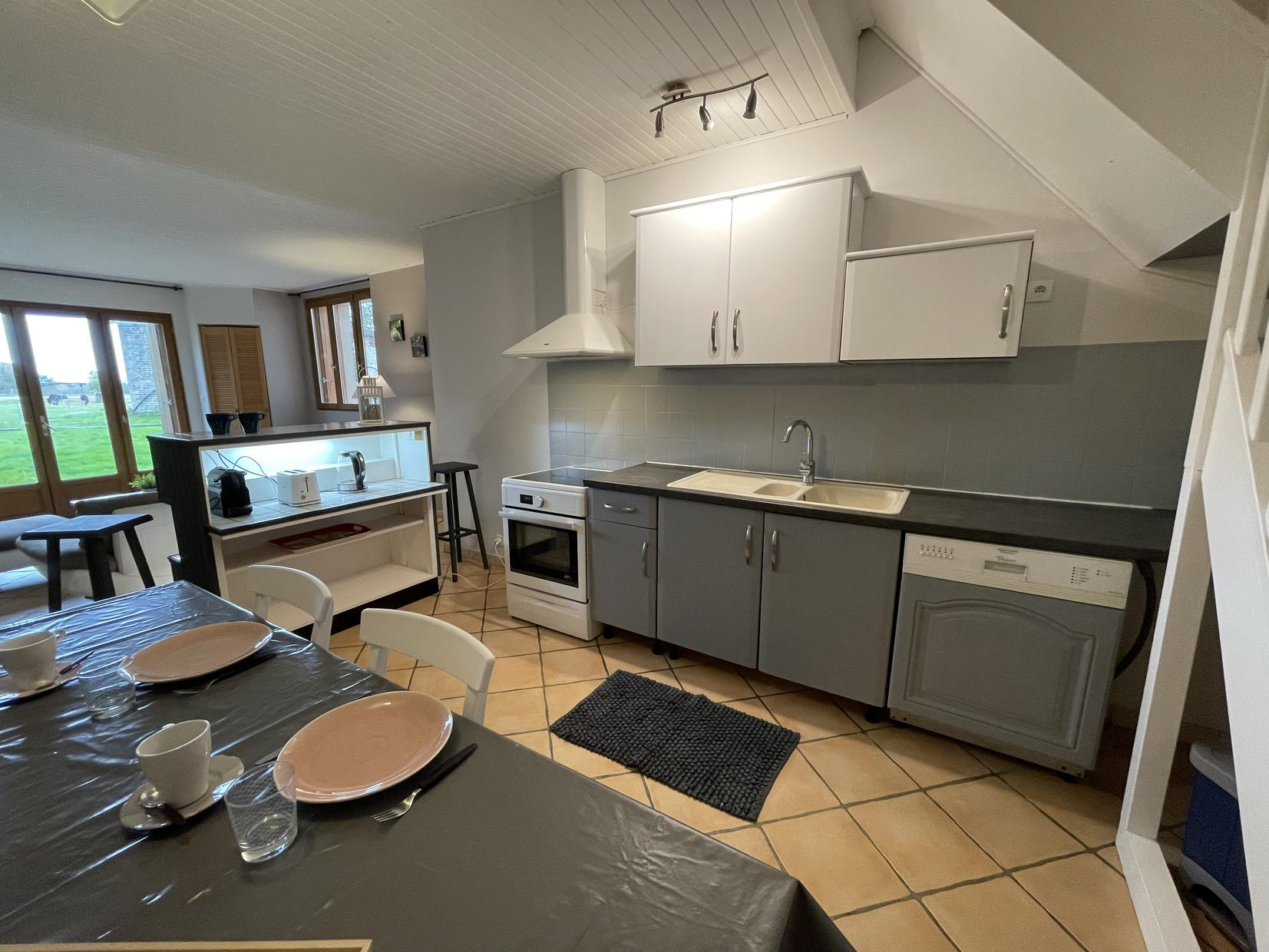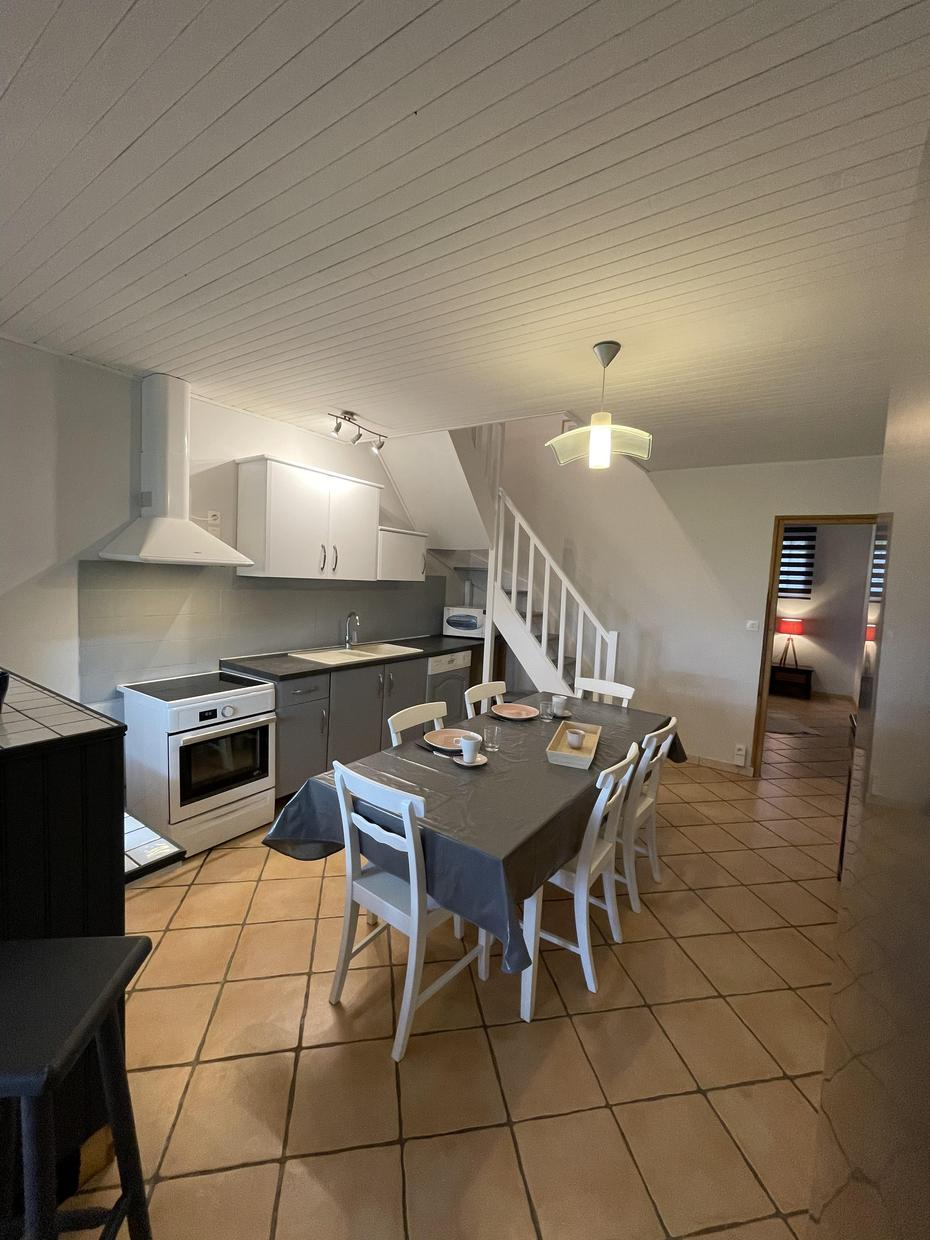 Au rez-de-chaussée : séjour avec cuisine équipée,1 chambre (1 lit 2 personne en 140cm) avec cabinet de toilette (vasque). A l’étage : 1 chambre (3 lits 1 personne en 90cm), salle d’eau, WC. Chauffage central inclus. Accès Internet Wifi.